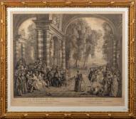 Gravure: 'Les plaisirs du bal', door Gérard Jean Baptiste Scotin (1698-1755), naar schilderij van Antoine Watteau (1684-1721), circa 1730, 48 x 63 cm