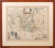 Deels ingekleurde gravure Zuidoost-Azië: 'India quae orientalis dicitur et insulae adiacentes', door Willem Janszoon Blaeu, circa 1635, 44 x 51 cm