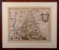 Ingekleurde gravure Overijssel: 'Transisalania Provincia, vulgo Over-IJssel', door Claes Jansz. Visscher, uitgegeven door Nicolaum Visscher, 1652, 47 x 58 cm