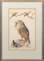 Adrien Christophe van Trigt (1825-1864), uil en vogels, aquarel, r.o. gemonogrammeerd, 46 x 30 cm