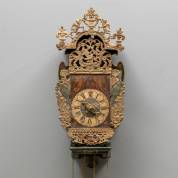 Polychroom beschilderde stoelklok, 18e/19e eeuw -defecten en restauraties-, 70 x 30 x 23 cm