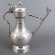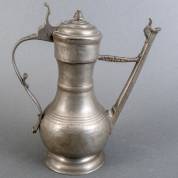 Tinnen stegkan, uitvoering Ludwig Roder, Bern, gemerkt op oor, laatste kwart 18e eeuw, herkomst: Polak Works of Art, Amsterdam, 2019, 34 x 28 x 13 cm