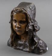 Ruth Milles (1873-1941), meisjesbuste, brons, gesigneerd, hoogte 22 cm