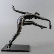 Paul de Boulongne (1863-1938), naakte danseres met tamboerijn, gepatineerd brons, gesigneerd op basement, 23 × 26 × 8 cm