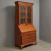 Mahonie topbureau geflankeerd door gezwarte zuiltjes, de beglaasde opstand met roedeverdeling, Engelse stijl, modern -breukje in kroonlijst-, 217 × 104 × 54 cm