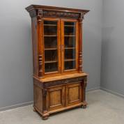 Notengefineerde buffetkast, de opstand met beglaasde deuren, bekroond door gestoken kap, Hollands, 20e eeuw -gebruikssporen en defecten-, 210 × 108 × 53 cm