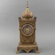 Verguld bronzen en verzilverde klok in Oosterse stijl, 19e eeuw -deurtje achterzijde defect, knop bovenzijde gelijmd-, 50 × 23 × 20 cm
