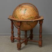 Vrijstaande globe met groen-rood beschilderde kaart, 20e eeuw -deukje, gebruikssporen- 98 × 80 × 80 cm