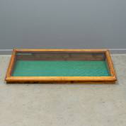 Grenen tafelvitrine bekleed met groen vilt, 20e eeuw, -vilt verkleurd- 16,5 × 121 × 58 cm