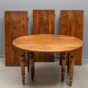Teakhouten coulissetafel met hangoren en vijf tussenbladen, Engeland, 20e eeuw -vlekken in bladen- 108 × 126 cm, ieder tussenblad 50,5 cm breed