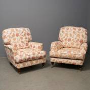 Paar fauteuils met floraal decor, de voorpoten voorzien van wieltjes, laatste kwart 20e eeuw, afmetingen circa 90 × 85 × 90 cm