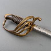 Stalen sabel met messing gevest en geribbeld zwart houten handvat in stalen schede, niet gemerkt, eind 19e eeuw -gebruikssporen-, lengte 103,5 cm