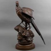 Alfred Dubucand (1828-1894), fazant op rotsblok met reptiel aan zijn voeten, gepatineerd brons, gesigneerd op rotsblok, hoogte 70 cm