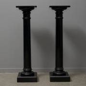 Paar zwartgelakte houten piëdestals met marmeren bladen, modern, 100 × 27 × 27 cm
