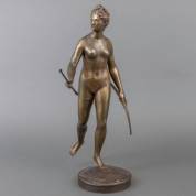 Gepatineerd bronzen beeld: Diane Chasseresse, latere kopie naar origineel van Jean-Antoine Houdon, 20e eeuw, hoogte 61 cm