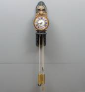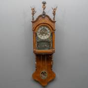 Friese staartklok in noten belijmde ingelegde kast, het uurwerk met scheepjesmechaniek, 19e/20e eeuw, 145 × 41 × 21 cm