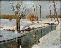 Hollandse School: winterlandschap, olieverf op doek, r.o. gesigneerd Meesters, 20e eeuw -lacune onderin-, 25 × 30 cm