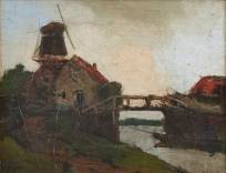 Willem George Frederik Jansen (1871-1949), binnenhaven, olieschets op doek, r.o. gesigneerd -craquelé-, 20 × 26 cm