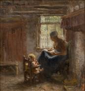 Bernardus Johannes Blommers (1845-1914), moeder en kind bij het raam, olieverf op doek, r.o. gesigneerd, herkomst: Kunsthandel 't Vijverbosch, Tuil, bijgevoegd: kopie taxatierapport, 37 × 34 cm
