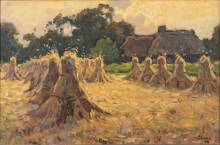 Ben Viegers (1886-1947), korenschoven in de zon, olieverf op doek, r.o. gesigneerd, 41 × 60,5 cm