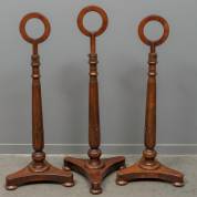 Drie in hoogte verstelbare mahonie standaards met ringen, 19e eeuw, hoogte 99 cm