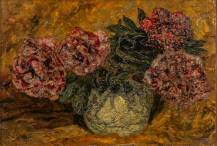 Jan Adam Zandleven (1868-1923), stilleven met pioenrozen in groene pot, marouflé, l.o. gesigneerd en gedateerd 1907, 34 × 49 cm