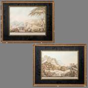 Twee aquatinten: 'Gezigt van een Kaffersche woonplaats, aan de zuidkust van Afrika', en 'Bijeenkomst van den Hoog ed. Gestr. Heer Generaal J.W. Janssens, etc.', uitgegeven door Evert Maaskamp, 1810 -beetje verkleurd-, 30 × 42 cm