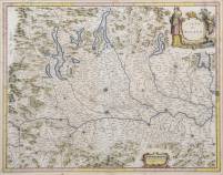 Ingekleurde gravure: Milaan, 'Stato di Milano', afkomstig uit de Atlas Maior, Willem Janszoon Blaeu, editie 1629-1672, Amsterdam, dubbelzijdig ingelijst, 41 × 52 cm