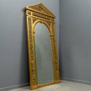 Grote spiegel in groen- en goudgelakte lijst met guirlandes, bekroond met timpaankap, Frankrijk, 19e/20e eeuw, 214 × 102 × 8 cm