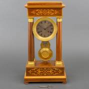Palissandergefineerde kolompendule met inlegwerk in een lichtere houtsoort, de geguillocheerde wijzerplaat met Romeinse cijfers, 19e eeuw, 50 × 15 × 26,5 cm