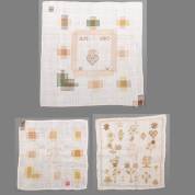 Drie zijde op linnen geborduurde merk- en stoplappen, alle met de initialen 'H.S.N.', en twee gedateerd 1816, grootste 43 × 43 cm