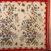 Cotton batik tulis kain panjang, the red borders with flowers, central panel with butterflies amongst plants and flowers, buketan-style, Pekalongan, Java, Indonesia, circa 1920 -few dirty spots-, 228 × 104 cm Katoenen batik tulis kain panjang, de rode rand met bloemen, het centrale deel met vlinders tussen bloemen, buketan-stijl, Pekalongan, Java, Indonesië, circa 1920 -paar kleine vlekjes-, 228 × 104 cm