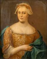 Europese School: vrouwenportret, borststuk, aanziend, met kanten mutsje, olieverf op doek, niet gesigneerd, 18e eeuw -twee kleine restauraties aan doek-, 67,5 × 54 cm