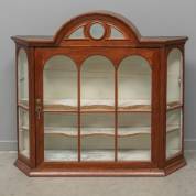 Notengefineerde hangvitrinekast, de halfronde kap met spiegeltjes, 18e/eerste helft 19e eeuw -één steunblokje voor schap ontbreekt-, 102 × 114 × 22 cm