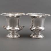 Paar verzilverde champagnekoelers in de vorm van calyxkraters, begin 20e eeuw, 26 × 28 cm