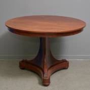 Ronde mahonie tafel op driehoekige poot met gesneden klauwen, biedermeier, 77 × Ø 112 cm