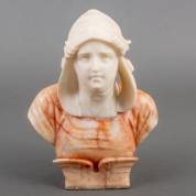 Trafeli Febo (1894-1935), vrouwenbuste, marmer en roodgeaderd albast, verso gesigneerd, hoogte 28 cm