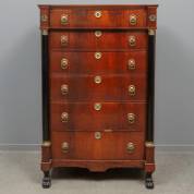 Mahonie chiffonnière, het front met twee gezwarte zuilen, staand op klauwpoten, begin 19e eeuw -kleine droogtescheuren in wanden, één profiel met fineerverlies-, 150,5 × 91,5 × 51,5 cm