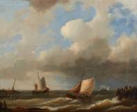 Hollandse School: schepen bij ruig weer, olieverf op doek, niet gesigneerd, midden 19e eeuw -gedoubleerd-, 66 × 81 cm