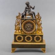 Gebronsd metalen beeldpendule: jongen leest hond voor, Frankrijk, tweede helft 19e eeuw, 36 × 24 × 9 cm