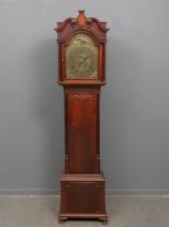 Staand horloge in mahoniegefineerde kast, de wijzerplaat met Romeinse cijfers, secondewijzer, kalender, en maanaanduiding, het slagwerk met dubbele bel en het speelwerk met veertien bellen, adres: Klaas Joh. Andriesse, Grouw, circa 1780 -kleine defecten rondom aan tandlijst, profieltjes, ajourwerk, etc., secondewijzer ontbreekt-, 295 × 56 × 35 cm
