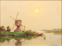 Jan Knikker Junior (1911-1990), visser bij molen, olieverf op doek, r.o. gesigneerd, 30,5 × 40 cm