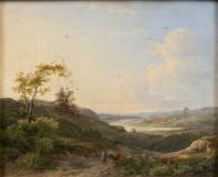 Marinus Adrianus Koekkoek (1807-1868), landschap met reiziger, olieverf op paneel, l.o. gesigneerd en gedateerd 1838 -craquelé-, 20 × 24 cm
