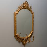 Spiegel in goudkleurige lijst met kuif en kaarsenhouders, Louis Seize -glas vervangen, overgeschilderd-, 135 × 70 cm