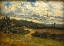 Johan Hendrik Weissenbruch (1824-1903), landschap (de ruige hoek Scheveningen), olieverf op papier, l.o. gesigneerd, verso getiteld -geplakt op paneel, twee hoeken beschadigd-, 13 × 9,5 cm