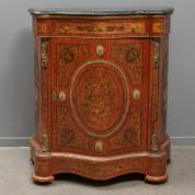 Mahoniegefineerde penantkast met natuurstenen blad, gebogen front, bronzen beslag en beschildering in de vorm van bloemmarqueterie, 20e eeuw, 110 × 100 × 50 cm