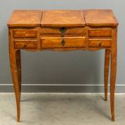 Mahonie en rozenhoutgefineerde poudreuse, tweede helft 19e eeuw -lichte gebruikssporen, enkele kleine fineerschades-, 74 × 74 × 41 cm