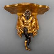 Vruchtenhouten polychroom beschilderde wandconsole, Afrikaanse jongeling, 19e eeuw -enkele krasjes-, 44 × 43 × 26 cm