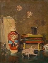 Goosen Egbert Bouwmeester (1897-1985), stilleven met schelp, boeken en vaas, olieverf op doek, l.o. gesigneerd en gedateerd 1951, 50 × 40 cm