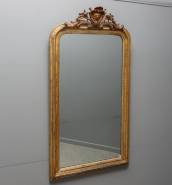 Schouwspiegel in vergulde lijst met kuif, eind 19e eeuw -defecten-, 150,5 × 79 cm